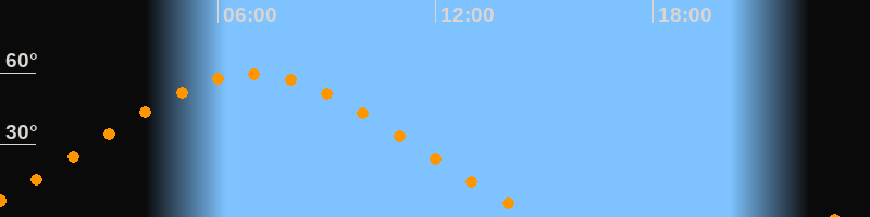 | Höchster Stand (Kulmination) | 06:57 Uhr (h = 59,5°) |