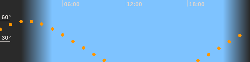 | Untergang | 10:24 Uhr im Nordwesten (αAz = 304°) |