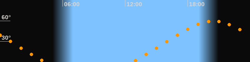 | Aufgang | 12:38 Uhr im Nordosten (αAz = 56°) |