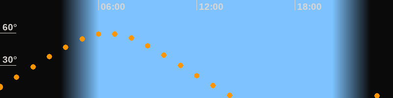 | Höchster Stand (Kulmination) | 06:34 Uhr (h = 59,5°) |