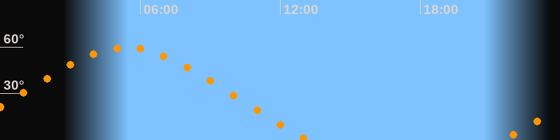 | Höchster Stand (Kulmination) | 05:24 Uhr (h = 59,5°) |