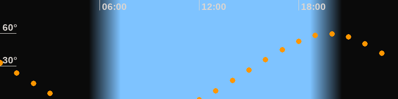 | Höchster Stand (Kulmination) | 19:50 Uhr (h = 59,5°) |