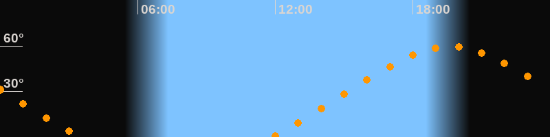 | Höchster Stand (Kulmination) | 19:38 Uhr (h = 59,5°) |