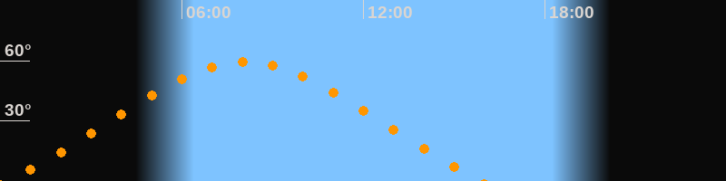 | Höchster Stand (Kulmination) | 08:05 Uhr (h = 59,5°) |