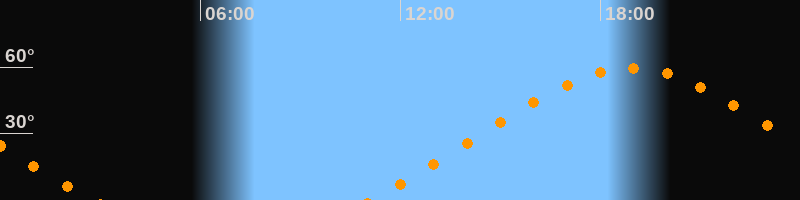 | Höchster Stand (Kulmination) | 18:55 Uhr (h = 59,5°) |