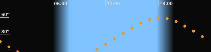| Höchster Stand (Kulmination) | 18:12 Uhr (h = 59,5°) |