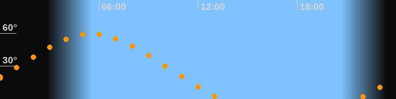 | Höchster Stand (Kulmination) | 05:33 Uhr (h = 59,5°) |