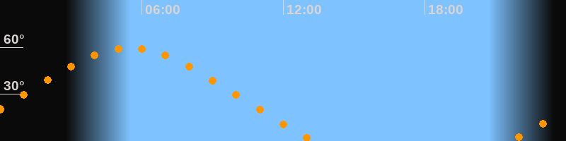 | Höchster Stand (Kulmination) | 05:29 Uhr (h = 59,5°) |