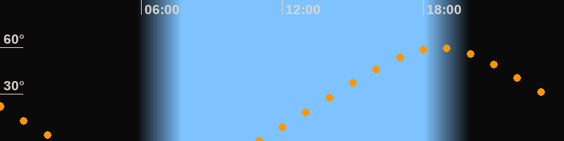 | Höchster Stand (Kulmination) | 18:41 Uhr (h = 59,5°) |