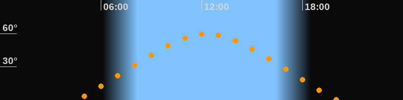| Höchster Stand (Kulmination) | 12:18 Uhr (h = 59,5°) |