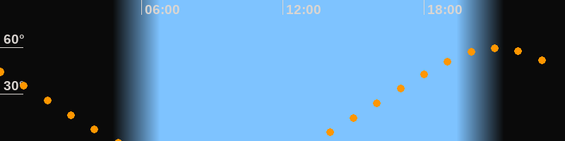 | Höchster Stand (Kulmination) | 21:03 Uhr (h = 59,5°) |