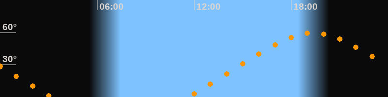 | Aufgang | 11:31 Uhr im Nordosten (αAz = 56°) |
