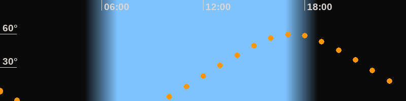 | Höchster Stand (Kulmination) | 17:15 Uhr (h = 59,5°) |