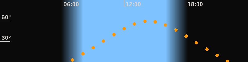 | Höchster Stand (Kulmination) | 14:22 Uhr (h = 59,5°) |