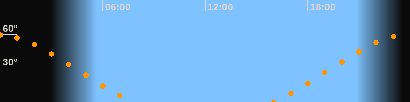 | Aufgang | 16:00 Uhr im Nordosten (αAz = 56°) |