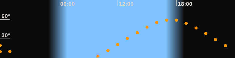 | Höchster Stand (Kulmination) | 17:24 Uhr (h = 59,5°) |