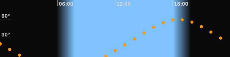 | Höchster Stand (Kulmination) | 18:34 Uhr (h = 59,5°) |
