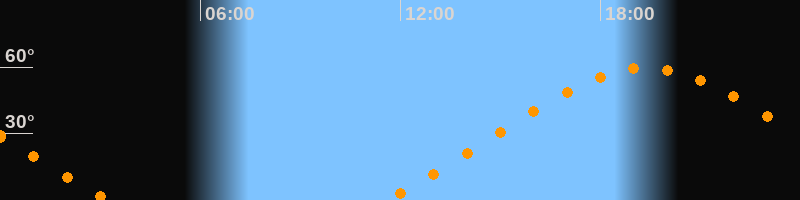 | Höchster Stand (Kulmination) | 19:23 Uhr (h = 59,5°) |
