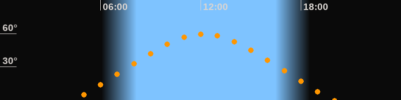 | Höchster Stand (Kulmination) | 12:09 Uhr (h = 59,5°) |