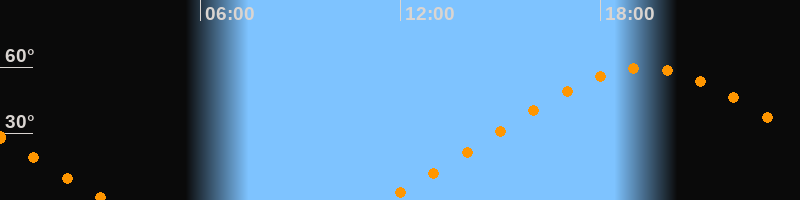 | Höchster Stand (Kulmination) | 19:20 Uhr (h = 59,5°) |
