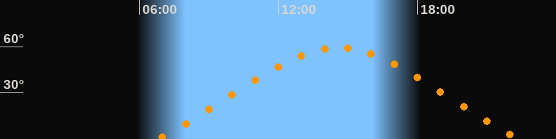 | Höchster Stand (Kulmination) | 14:35 Uhr (h = 59,5°) |