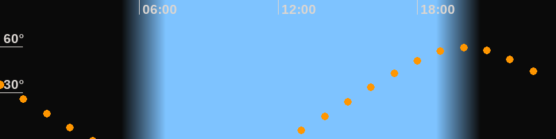 | Aufgang | 12:13 Uhr im Nordosten (αAz = 56°) |