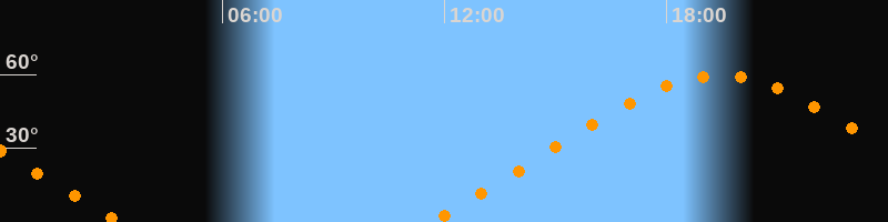 | Höchster Stand (Kulmination) | 19:24 Uhr (h = 59,5°) |