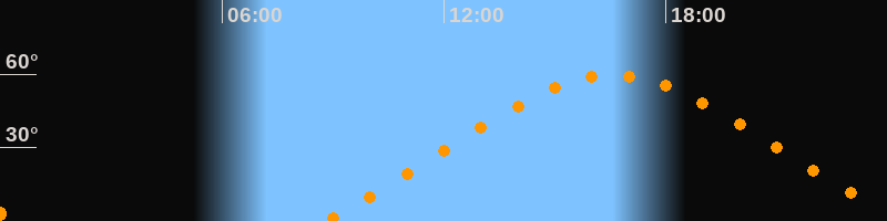 | Höchster Stand (Kulmination) | 16:34 Uhr (h = 59,5°) |