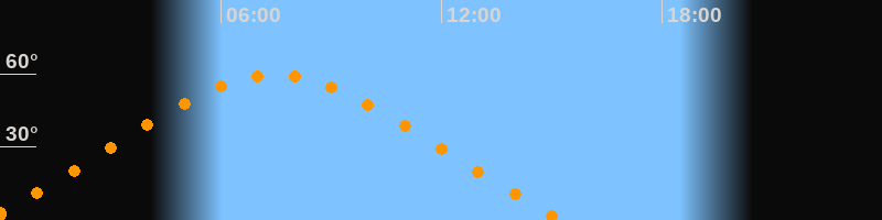 | Höchster Stand (Kulmination) | 07:28 Uhr (h = 59,5°) |