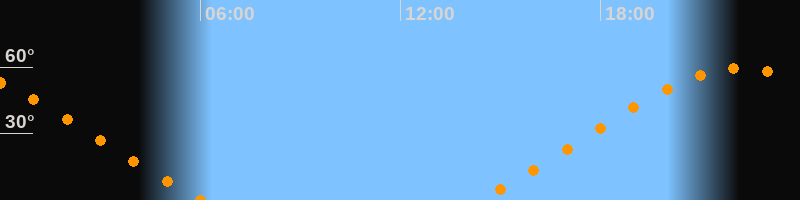 | Aufgang | 14:20 Uhr im Nordosten (αAz = 56°) |