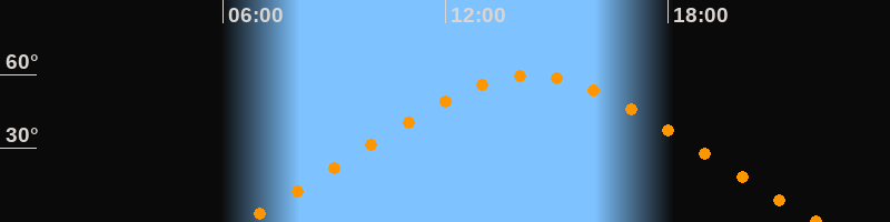 | Höchster Stand (Kulmination) | 14:18 Uhr (h = 59,5°) |