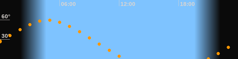 | Höchster Stand (Kulmination) | 04:48 Uhr (h = 59,5°) |
