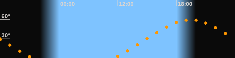 | Höchster Stand (Kulmination) | 19:25 Uhr (h = 59,5°) |