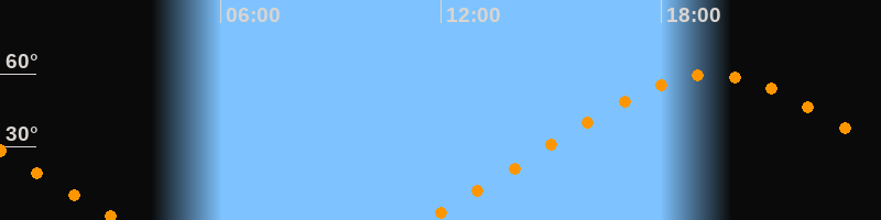 | Höchster Stand (Kulmination) | 19:21 Uhr (h = 59,5°) |