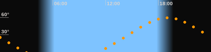 | Höchster Stand (Kulmination) | 19:02 Uhr (h = 59,5°) |