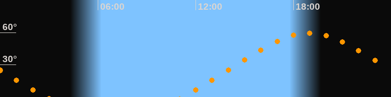 | Höchster Stand (Kulmination) | 18:58 Uhr (h = 59,5°) |