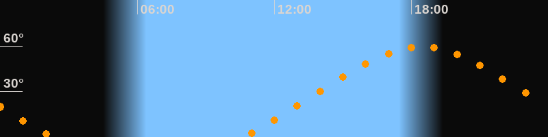 | Höchster Stand (Kulmination) | 18:26 Uhr (h = 59,5°) |