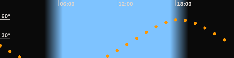 | Höchster Stand (Kulmination) | 18:22 Uhr (h = 59,5°) |