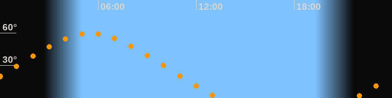 | Höchster Stand (Kulmination) | 05:32 Uhr (h = 59,5°) |