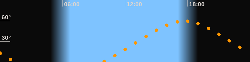 | Höchster Stand (Kulmination) | 17:40 Uhr (h = 59,5°) |