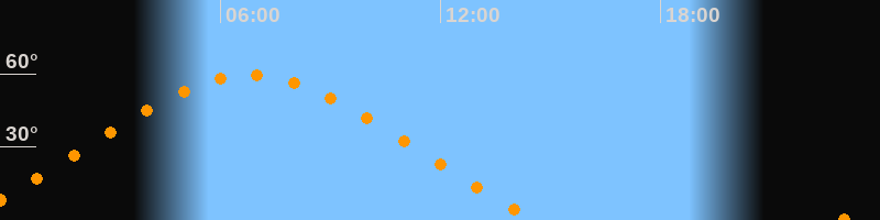 | Höchster Stand (Kulmination) | 06:47 Uhr (h = 59,5°) |