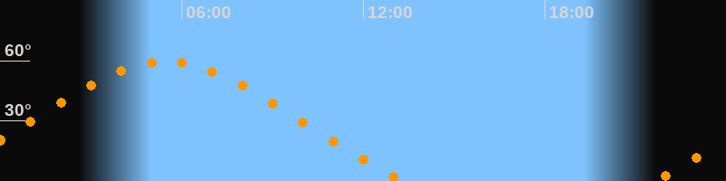 | Höchster Stand (Kulmination) | 05:29 Uhr (h = 59,5°) |
