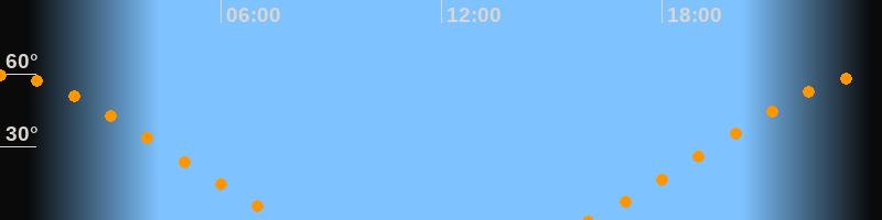 | Aufgang | 16:00 Uhr im Nordosten (αAz = 56°) |