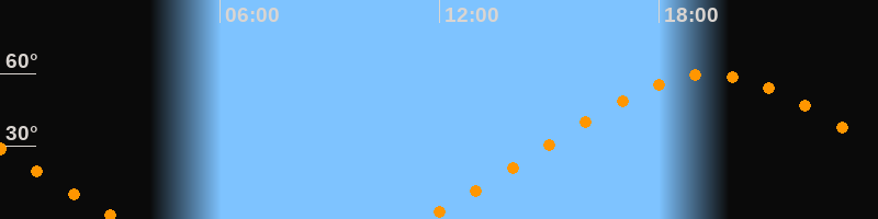 | Höchster Stand (Kulmination) | 19:23 Uhr (h = 59,5°) |