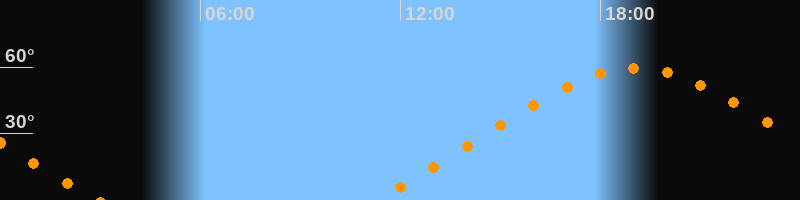 | Aufgang | 11:13 Uhr im Nordosten (αAz = 56°) |
