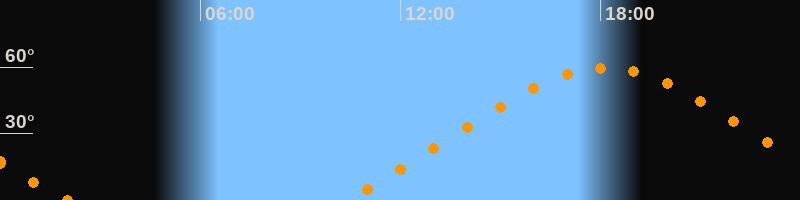 | Höchster Stand (Kulmination) | 18:09 Uhr (h = 59,5°) |