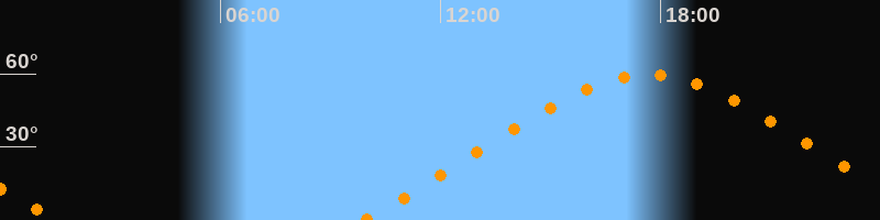 | Höchster Stand (Kulmination) | 17:41 Uhr (h = 59,5°) |