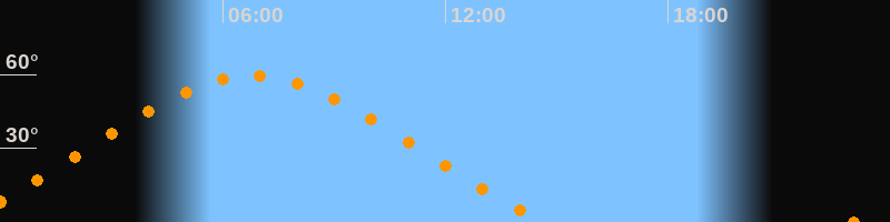 | Höchster Stand (Kulmination) | 06:48 Uhr (h = 59,5°) |