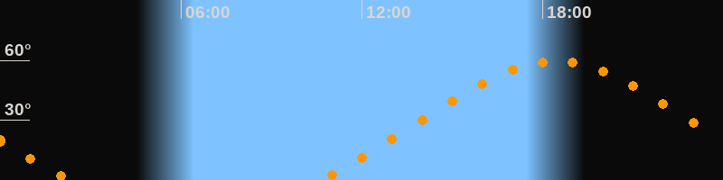 | Höchster Stand (Kulmination) | 18:25 Uhr (h = 59,5°) |