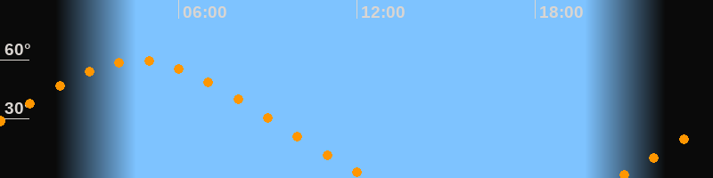 | Höchster Stand (Kulmination) | 04:36 Uhr (h = 59,5°) |